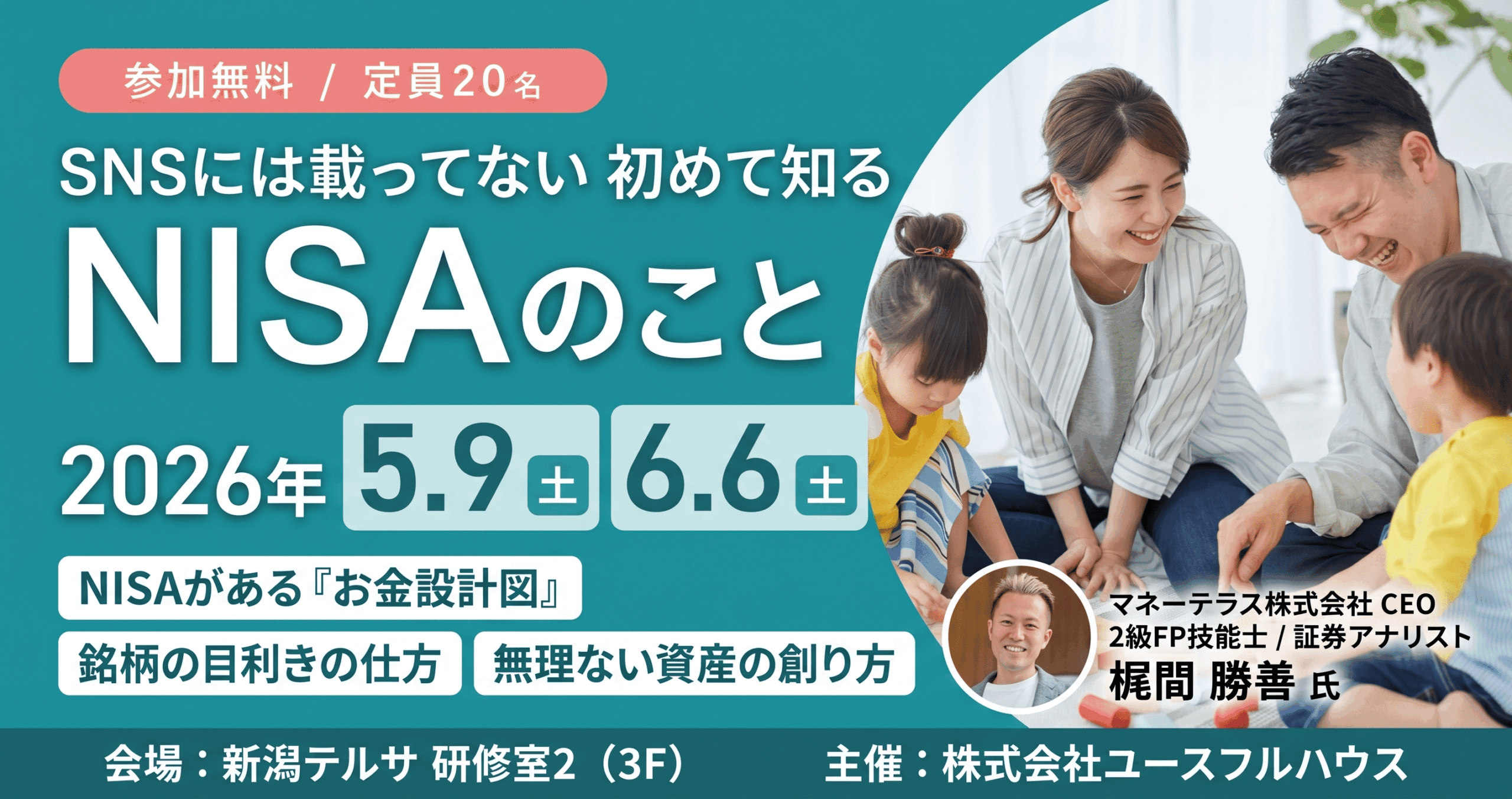 お金のプロに学ぶマネーセミナーをユースフルハウス様主催で開催いたします。